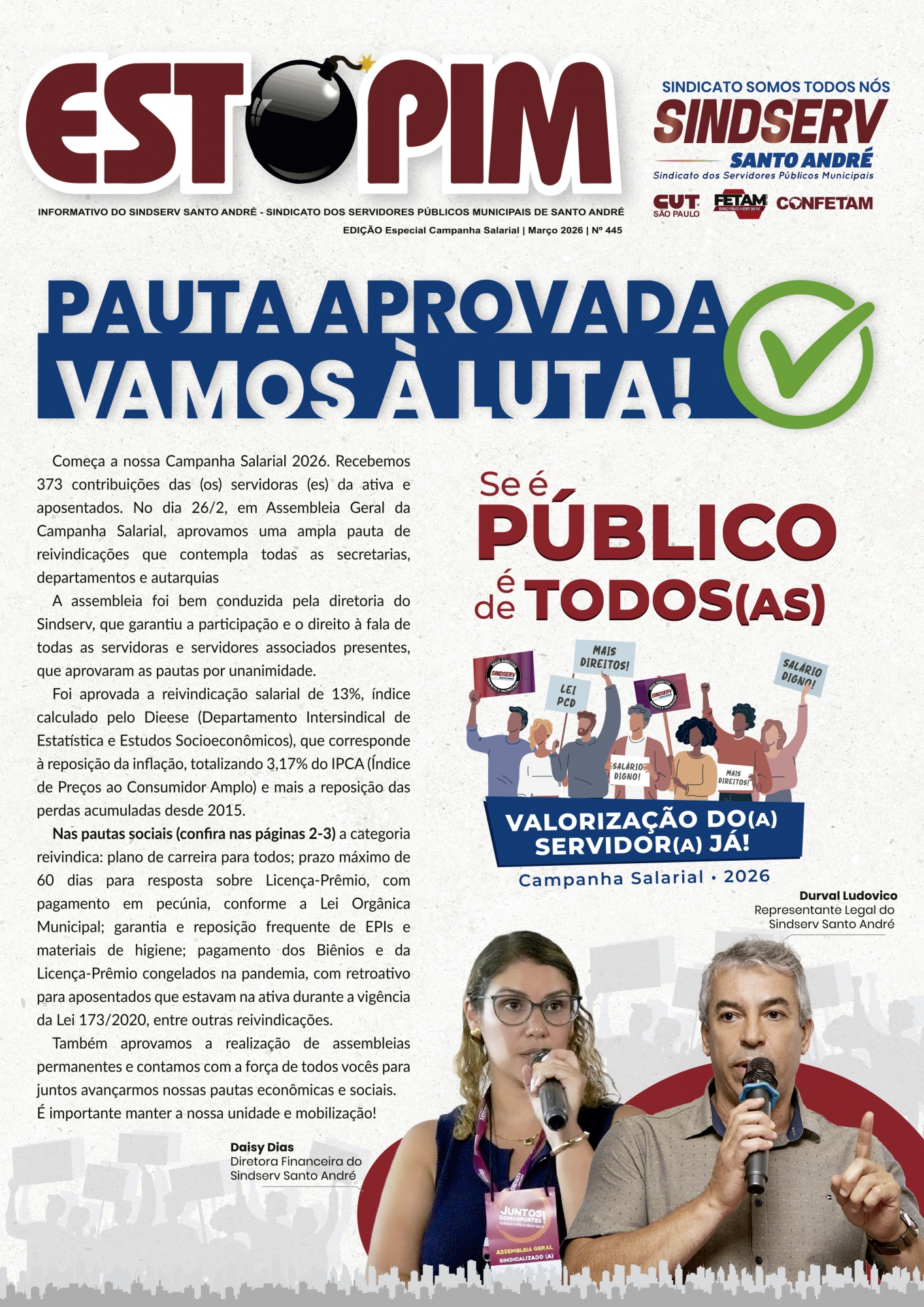 O Sindicato convoca todos os servidores associados para participar no dia 26 de fevereiro.