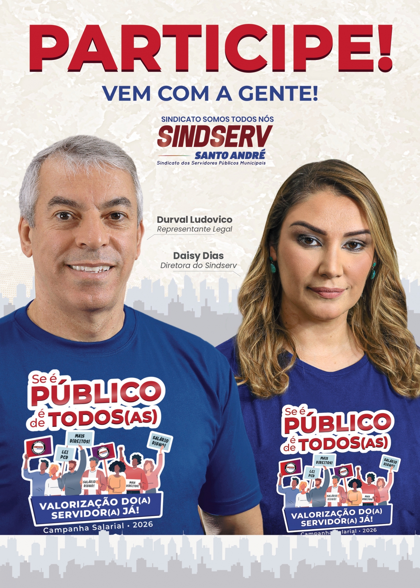 Servidor (a), esteja atento aos chamados da comissão de negociação. Todas as informações estarão disponíveis no site www.sindservsantoandre.org, no jornal Estopim e no Facebook do Sindicato. Fique atento! Só haverá vitórias se houver a participação de todos!